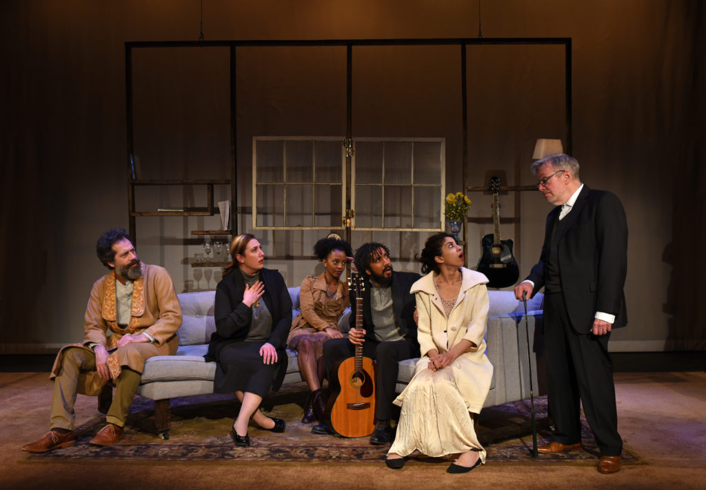 It is definitely a challenge for actors to go backwards through a story, especially if it is a very high stakes show and the climax is very big. The stakes are high for the characters in Vanya. There is a marriage that could be ruined; there is a family that could be disconnected; there are people that could die, and there are people whose hearts could break. Knowing what is going to happen to all the characters at the end of the story at the beginning of the play kind of deflates the stakes. I do think it is important to have an element of mystery to a show in order for it not to be boring. In this version of the play, the mystery of the play ends up being how will the show work if we already know the ending. That is a very interesting question to ask and I think it must have been fun for the people making the play to figure out because you don't usually get to ask a question like that when you are doing such a well-known show. It can be difficult to have an ending that wasn't specifically written to be an ending. The end of act one of Uncle Vanya does not not seem like the end of a play at all. So, in this adaptation, they use direct address to the audience to make it seem more like an ending. Everyone talks to the audience about how they can maybe do this part now because they are stronger and they have gone through it so many times.